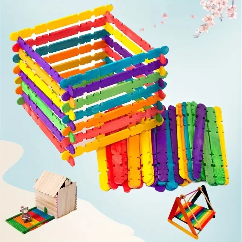 Multi-coloured Lollypop Sticks, Model DIY Arts & Crafts for All Ages, Small Modelling Boxes for Valuables , Jewellery, Pens Pencils Cases, Mobile Phones Stand, Photo Frames, Table Lamps, Miniature Houses, Tools Required, Utility Craft Knife, Mitre Jig, Protective Surface, Fine Sandpaper, Sand Small Clamps, Wood Glue, Ruler, Pencil to Mark your Cuts,