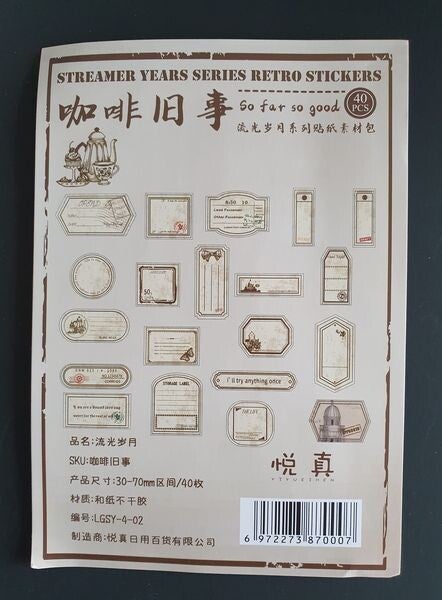 40 pcs STREAMER YEARS RETRO Paper Craft Stickers Vintage Stationery, Card Making, Scrapbooking, Decorative Journal Materials Handmade DIY Material Paper Planning Creativity Collage Seal envelopes