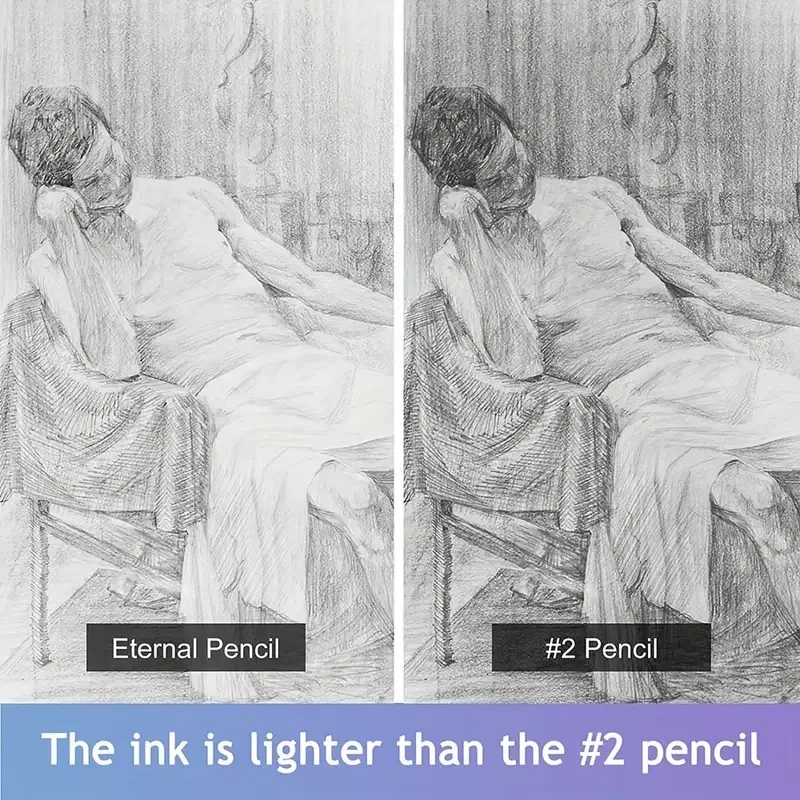 1pc Inkless Pencil Eternal, Everlasting Pencil Replaceable Head HB nib Infinite Pencil, built in eraser Inkless Pen, Technology Unlimited smooth Hand writing Eternal Pencil 0.5mm Fine nib smooth Handwriting