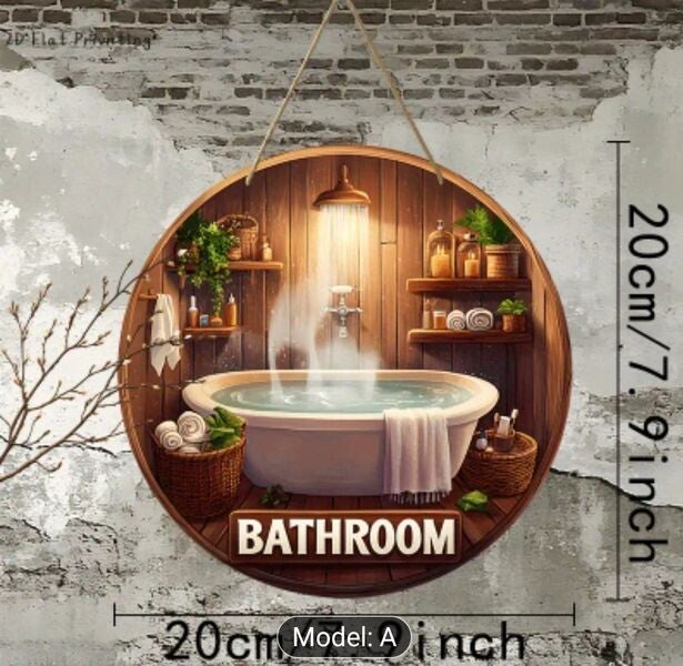 Arts and Craft Design BATHROOM, Round Wall Door or Window Ledge, Vintage Bathtub Wooden Sign, Cozy Home Decorative Accessory, Perfect Gift, Easy Fitting, Suppliers of Kitchen, Bathroom, Bedroom, Outside BBQ area, Laundry Room, Bar, Business, Office and more.. Styles Around the Home, Size 8 Inch Diameter,