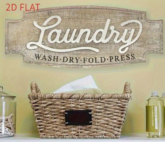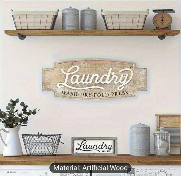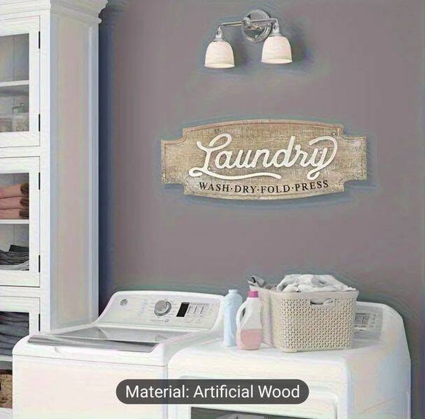 Modern Design LAUNDRY Room Labelling Wooded Sign, for Home, Launderette Business, Themed Wal Art, Kitchen, Utility Rooms, Fix Sign with Sticky Pads (Provided), Wash Dry Fold Press Lettering,