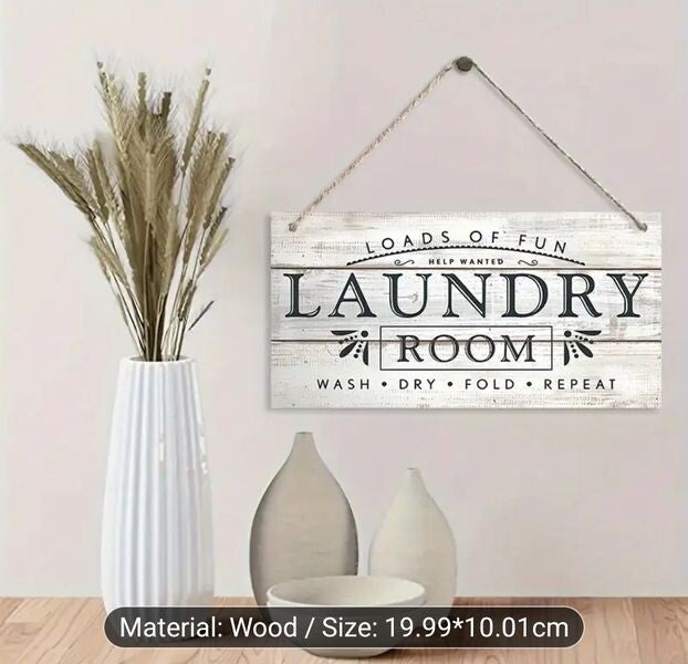 LAUNDRY ROOM "Wash Dry, Repeat" Wording Wooden Door, Wall Hanging Sign, for Home and Business's