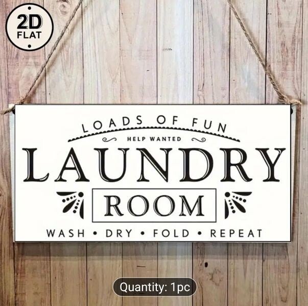 Fun LAUNDRY ROOM "Loads of Fun" "Wash Dry Fold Repeat" Text Wooden Door Wall Sign, Easy Install with Pre Drilled Holes, Twine Provided, For the Serious Hobbyists,