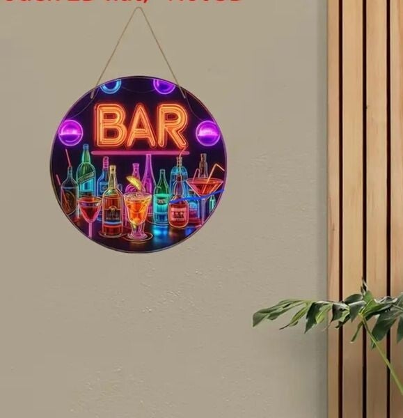 2D Flat Neon Style Bar Sign, Man Cave Backyard Bar, Pubs, Public Houses, Grocery Stores, Corner Shop, Off Licences, Restaurants, Garden Shed and Converted Garage Pub and Bar, Metal Neon Style Signs, 2D Flat Print, Size 8Inch Diameter, 8 Inch Diameter,