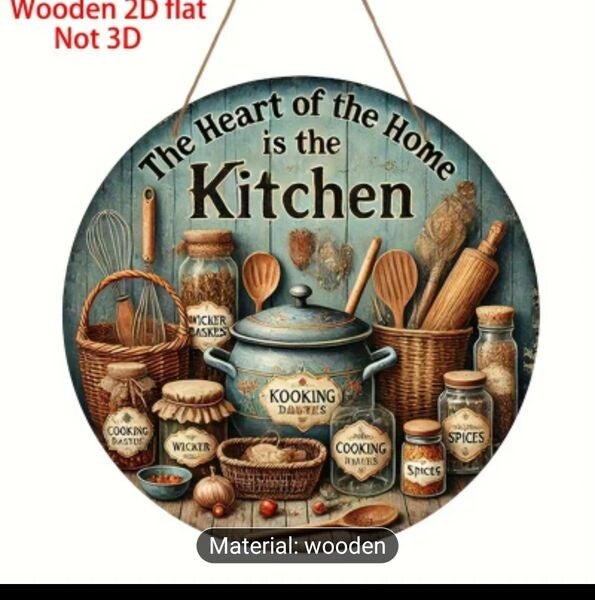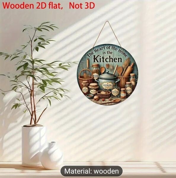 KITCHEN Wooden Door Sign, A Focal Point well-designed colourful sign, “food”, humour, "kitchen,” "Pantry” "home," "eat," "drink," "cook," "bake," "gather," "family," Size Size 8 Inch Diameter, 2D Rustic-style wood signs, Printed Plaques, All our signs come with Heavy Duty Double Sided Adhesive Removable NON RESIDUE CLEAR DOTS, Means NO Screws NO Hanging, Fitted in Seconds, Size Size 8 Inch Diameter,