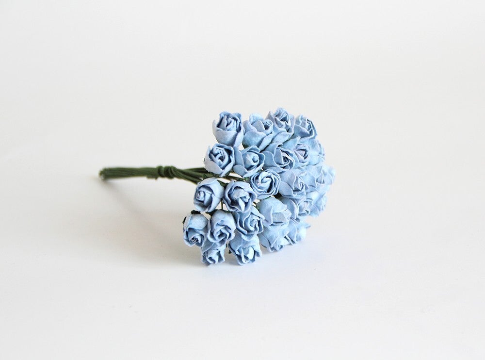 BLUE MIDI SEMI OPEN ROSES Mulberry Paper Flowers Card Making Create Craft DIY Decorative Projects Flower Displays Paper Crafting Head Wrist Band Doll House Miniature Flowers Art Birthday Wedding Cards Floral Art and Crafts Home Decor Scrapbooking Gift
