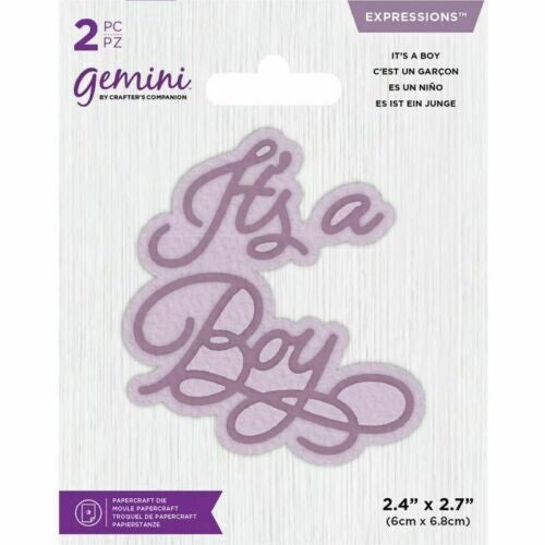 Gemini Mini Expressions “IT’S A BOY” 2pc Sentiment Metal Die Set Crafters Companion SALE